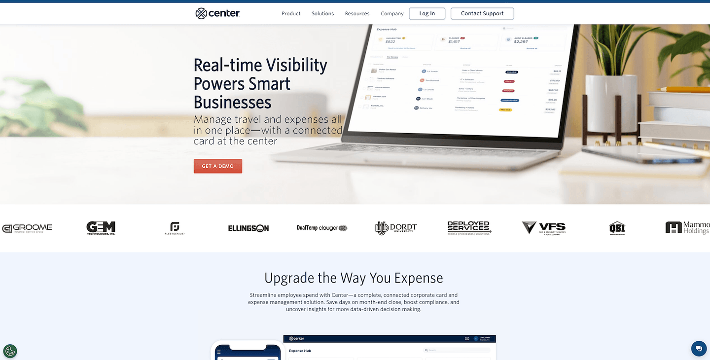 Center is a real-time expense management solution that integrates a corporate card with expense management functionalities to streamline employee spend, save time on month-end close, boost compliance, and provide insights for data-driven decision-making. It captures spend as it happens, automates the expense process, manages travel and expenses in one place, and offers analytical tools to identify spending patterns and trends.
