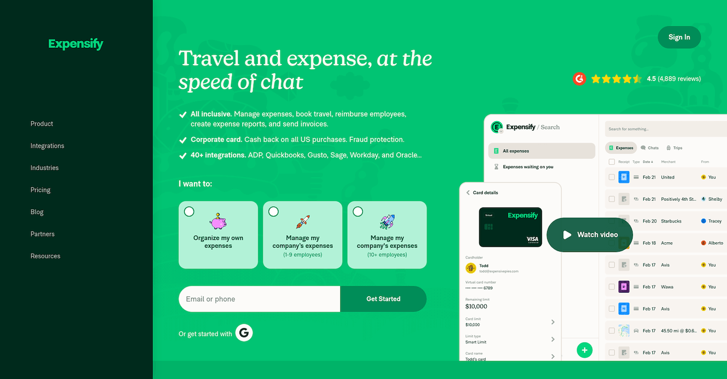 Expense Management: Simplifies the process of managing expenses by eliminating the need for traditional expense reports and ensuring all receipts are captured.