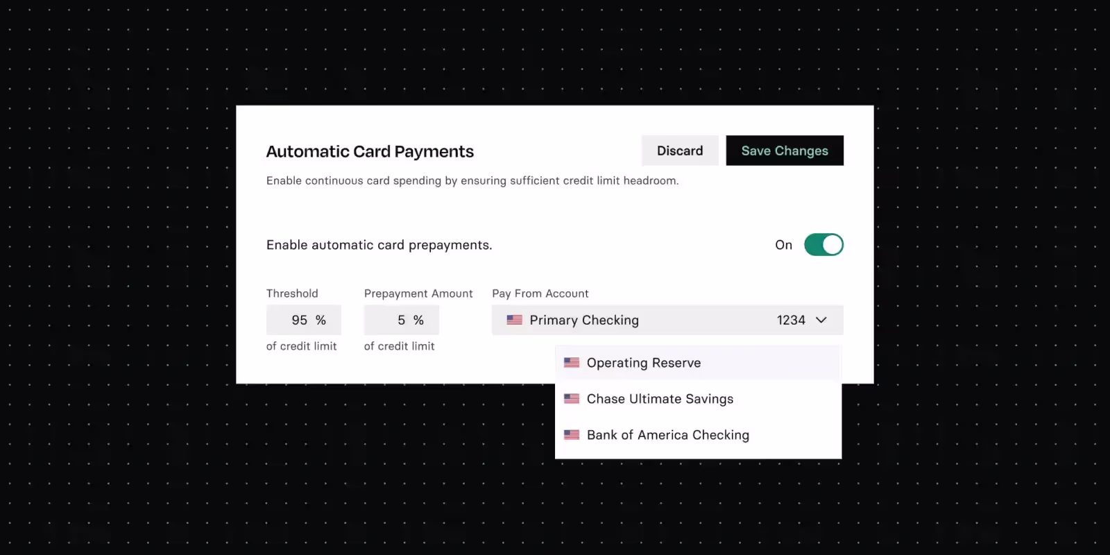 Read to learn more about our new set-it-and-forget-it rules that automatically pay a portion of your card's balance. Business spending has never been simpler.