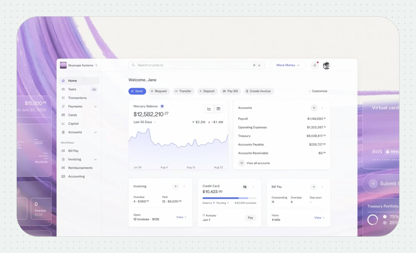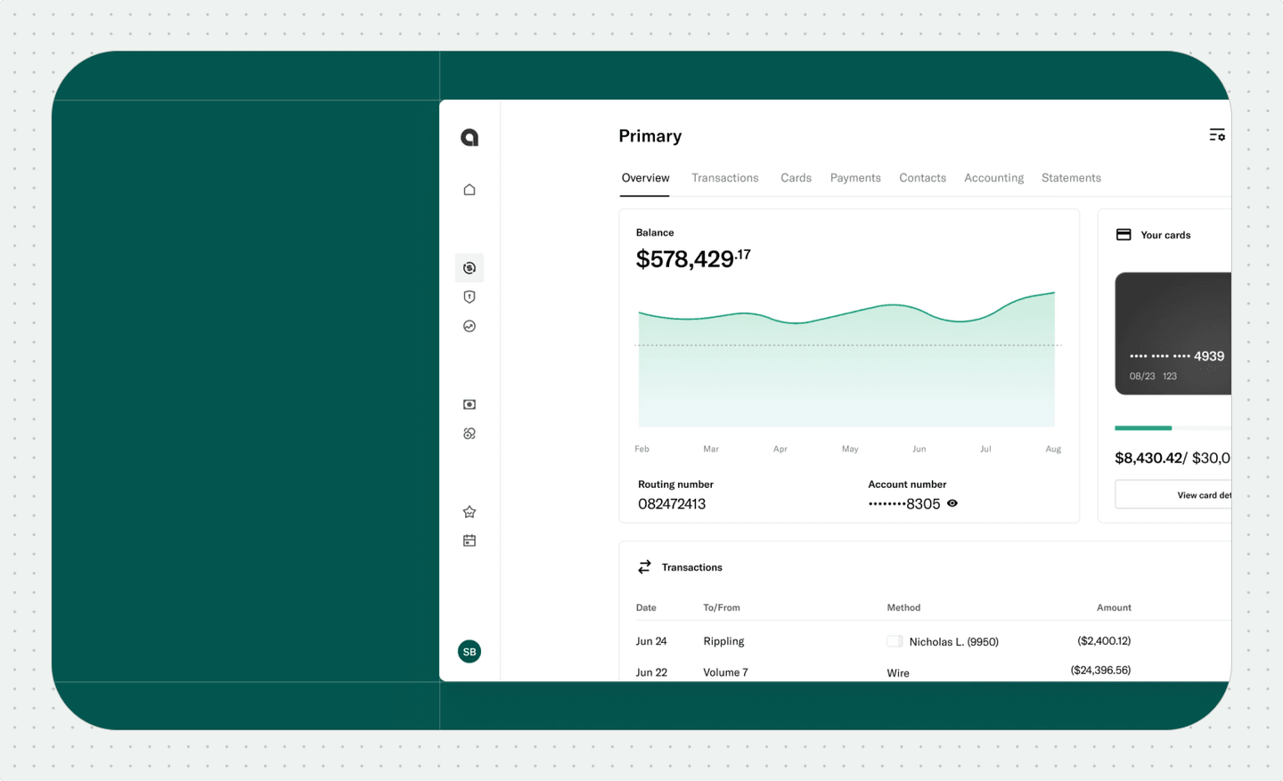 At first raise: The wire from the VC hits on a Tuesday. By Wednesday morning, operating cash is in the treasury earning yield, virtual cards are live with spend limits, and the accounting sync is configured. No manual setup. No waiting.