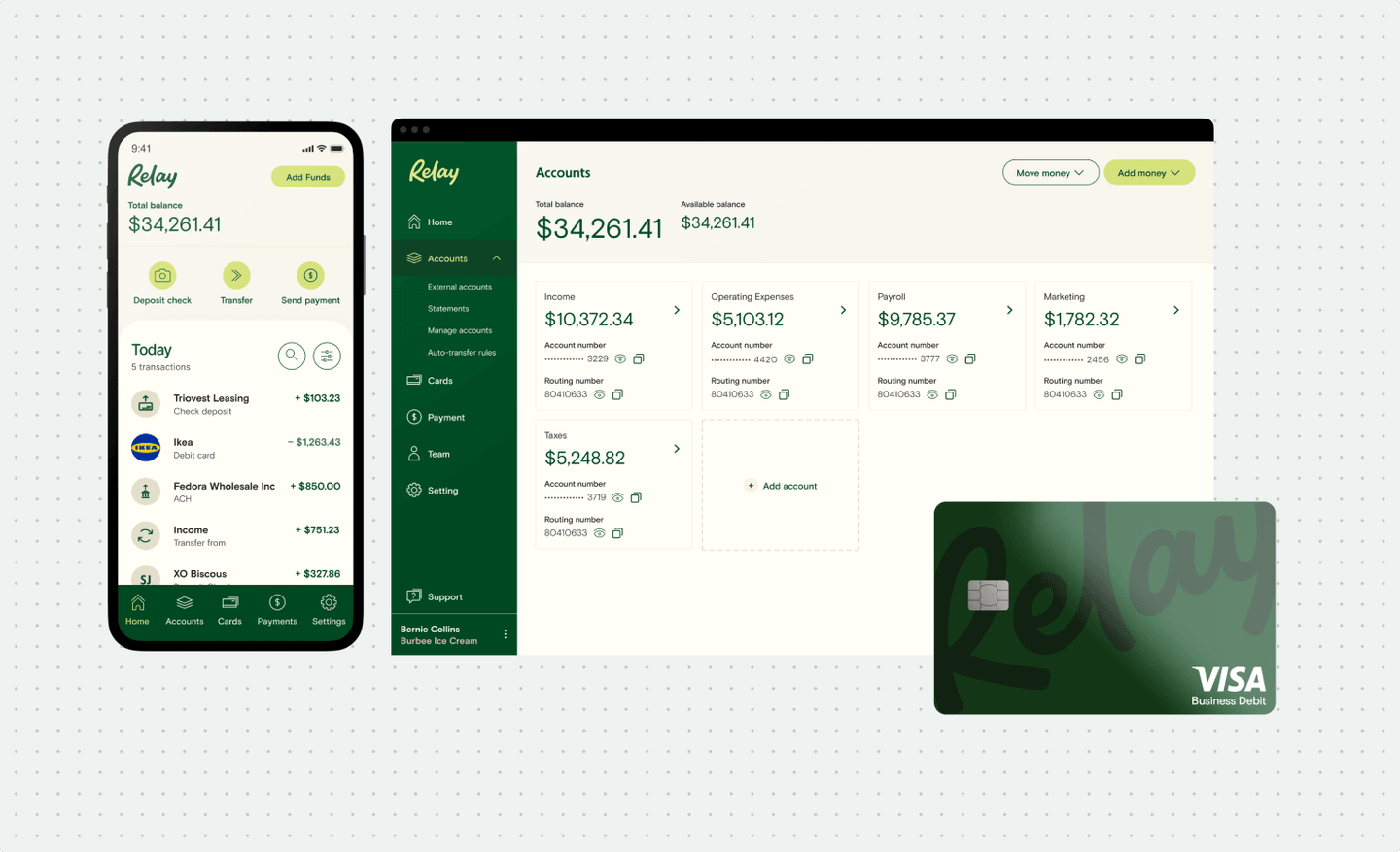 Relay | Multi-account cash management | Up to 20 checking accounts, expense controls, automated transfers | $0–$30 | $250K (Thread Bank) |