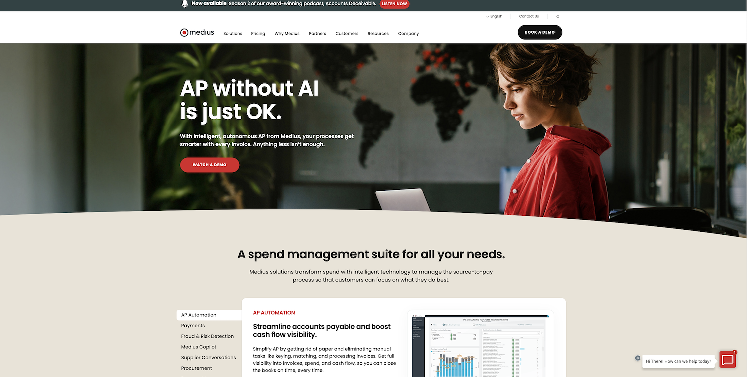 Medius specializes in AP automation and global payment software, offering intelligent, autonomous solutions to streamline accounts payable processes and improve cash flow visibility. Their comprehensive suite includes AP automation, payment automation, fraud and risk detection, procurement, expense management, sourcing, contract management, and supplier onboarding, leveraging AI and machine learning to optimize financial processes.