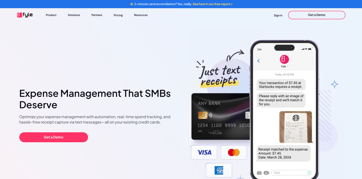"Fyle makes it so easy to keep track of outstanding expense receipts. The integration with text messaging, Slack, email, and Google Calendar makes it seamless." - Verified User