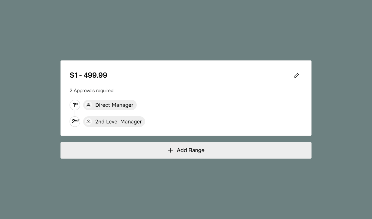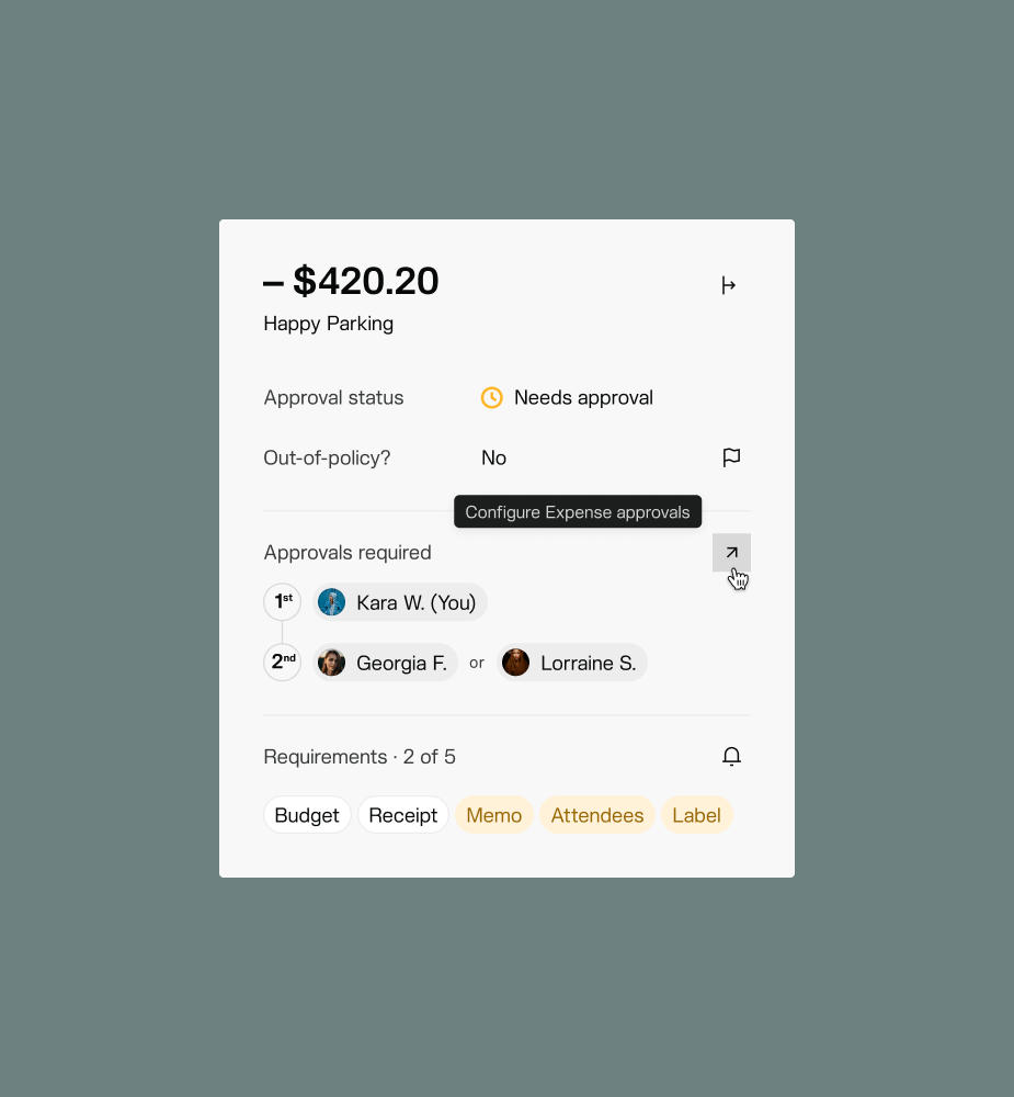 This experience is optimal for businesses in the 10-50 employee range with a central approver for expenses (like a CFO) but also want to incorporate a first level of approvals for additional control.