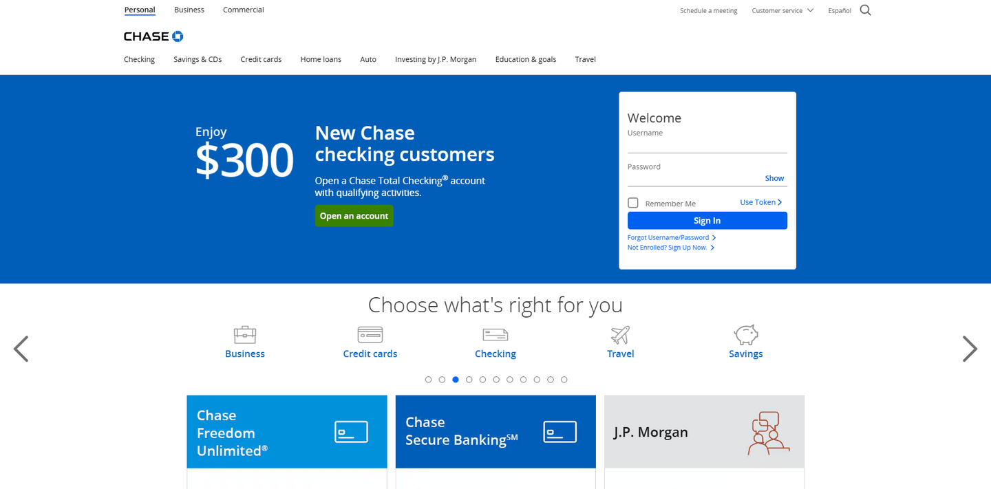Chase for Business offers a range of financial services tailored for business customers, including checking and savings accounts, loans, credit cards, and payment processing. Their main value proposition is providing flexible solutions to support business growth, catering to personal, business, and commercial customers.