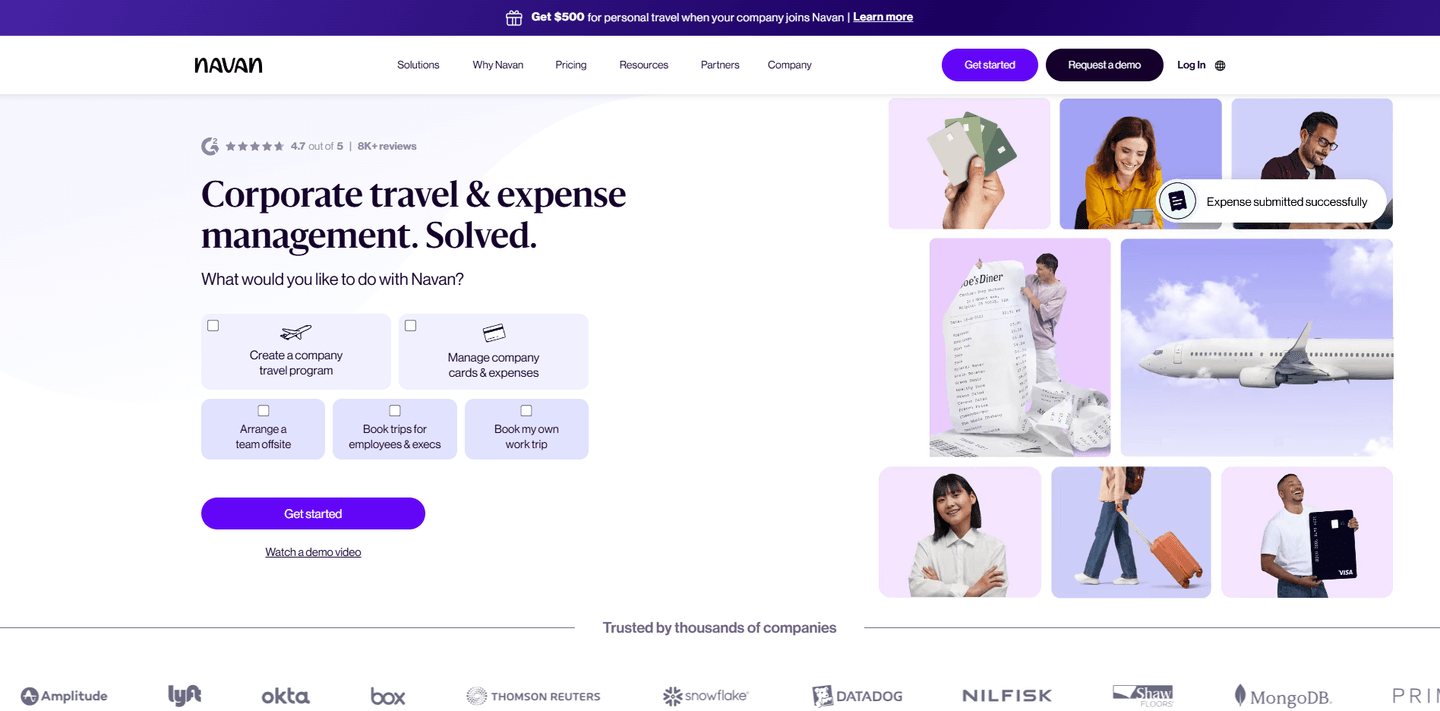 Navan Travel: Simplifies corporate travel management by allowing employees to book from an extensive inventory while adhering to company spending limits.
