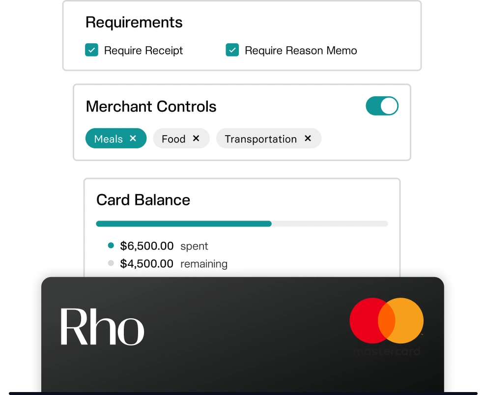 Worried that employees will misuse these cards? Modern solutions like Rho make it easy to enforce your expense policy with strict spend limits and restrictions.
