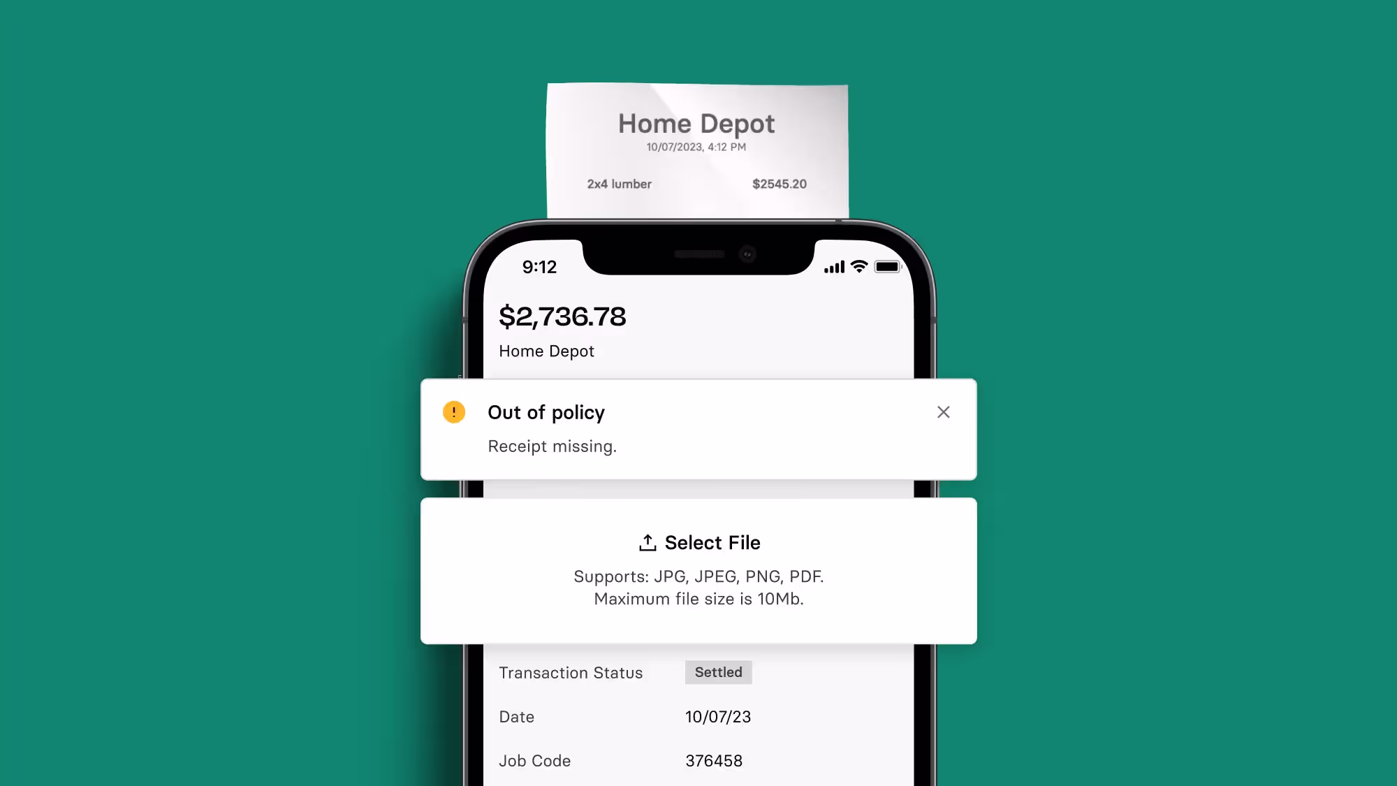 Regardless of location, you can utilize Rho's mobile app to fill in necessary transaction details like job codes, notes, or additional receipt details.