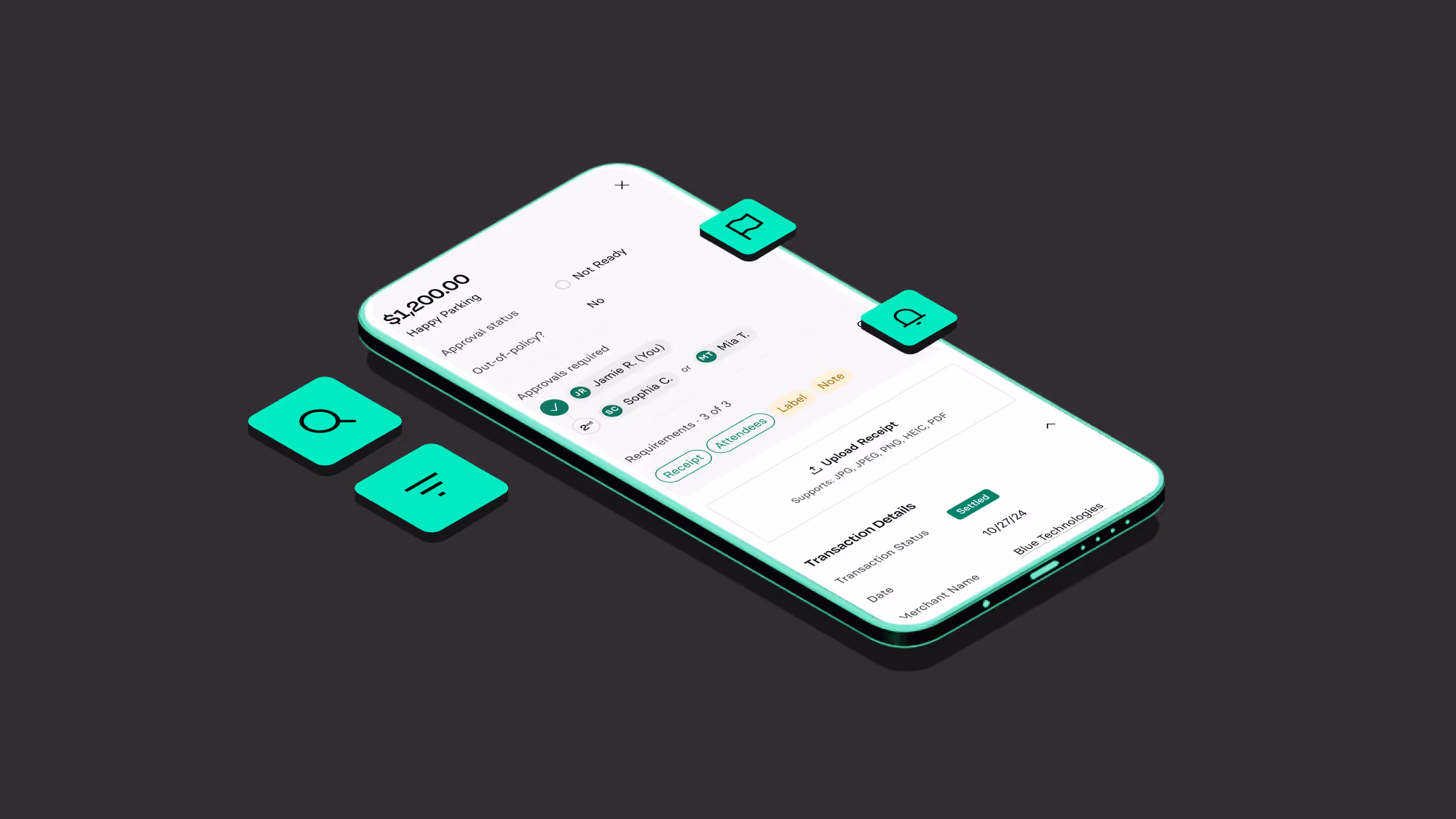 With our updated expenses drawer, approvers can now send reminder emails for missing or incorrect expense requirements. We've also added a flag button to manually highlight out'of'policy expenses.