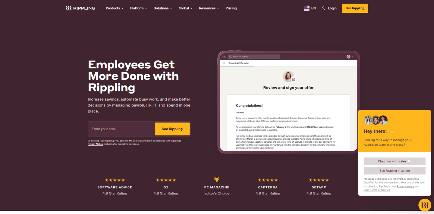 "Rippling offers a wide range of services and acts as a one-stop destination for all my needs." - Amogh G.