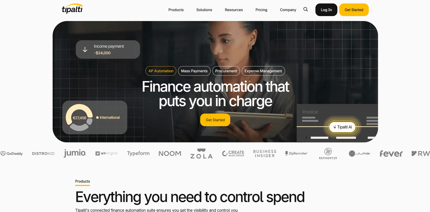 Tipalti is a finance automation platform that streamlines accounts payable, procurement, employee expenses, and global mass payments for mid-sized and growing companies. Leveraging AI-driven capabilities, Tipalti offers a comprehensive suite of tools designed to eliminate manual work, enhance efficiency, and provide full visibility and control over financial operations.