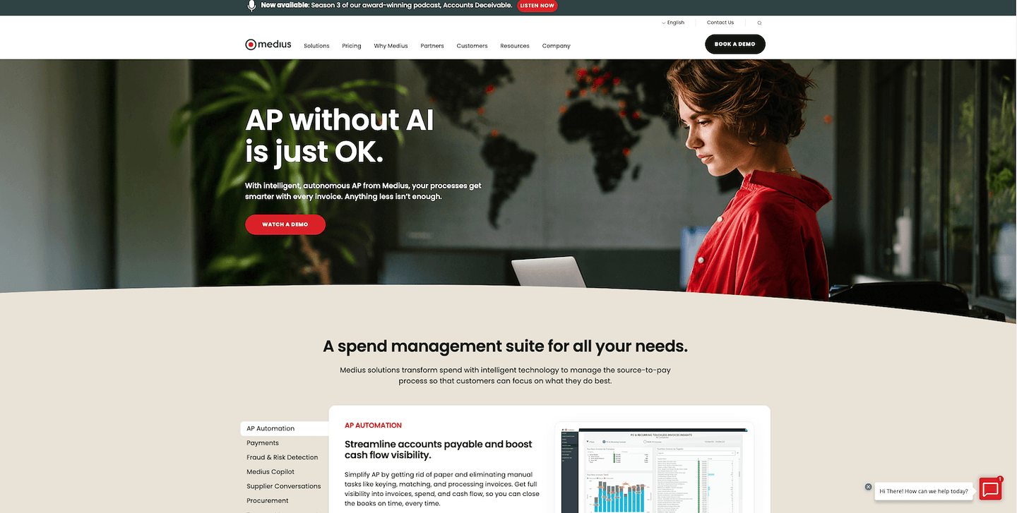 Medius offers an intelligent, autonomous accounts payable (AP) automation and global payment software platform that leverages AI and machine learning to streamline the invoice-to-pay process, eliminate manual tasks, and provide full visibility into invoices, spend, and cash flow. The comprehensive suite covers AP automation, payment automation, fraud and risk detection, procurement, expense management, sourcing, contract management, and supplier onboarding, designed to integrate with major ERP systems and serve a wide range of industries and company sizes.