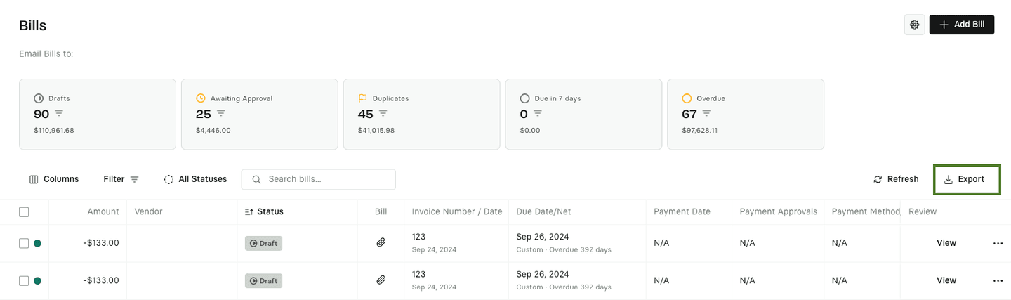 Navigate to the relevant tab you want to export (Banking, Bill Pay, Expenses, etc.).