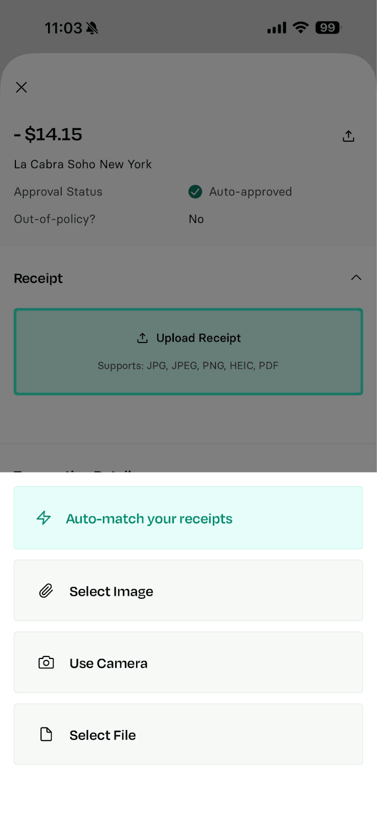 You can attach receipts in a few ways — choose what fits your workflow.