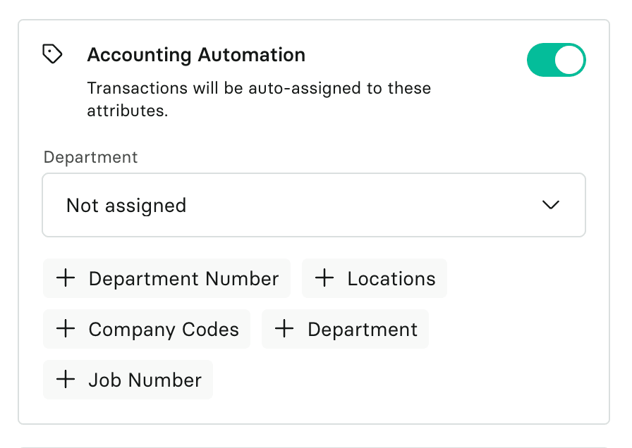 You can configure accounting automation settings for physical cards to help streamline reconciliation and categorization of transactions.